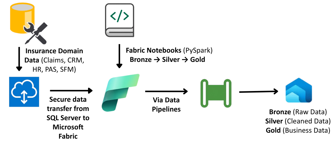 • A scalable and automated data pipeline was implemented using Microsoft Fabric, leveraging the Medallion Architecture to enable structured data processing across Bronze, Silver, and Gold layers.