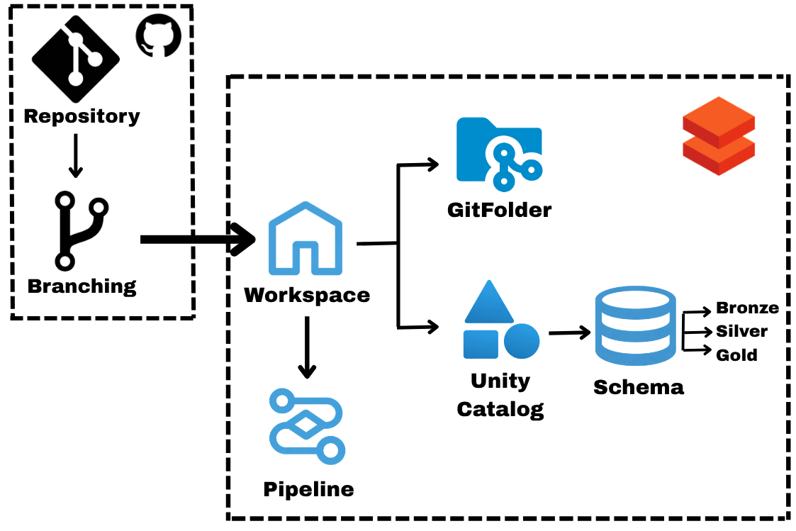 - Data is ingested from the client-provided GitHub repository into Databricks using a controlled ingestion process.